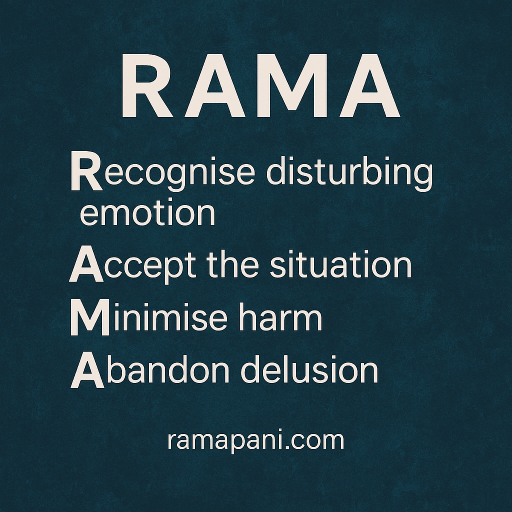 Life inevitably presents us with challenges that stir up strong emotions and confusion. In moments of difficulty, Buddhist teachings remind us that the way we respond can either deepen our suffering or open a path toward clarity and peace. The following mnemonic offers a practical guide rooted in Buddhist wisdom. Each step reflects a core principle of the Dharma, from mindfulness and equanimity to ethical conduct and insight. By recognising emotions as they arise we cultivate resilience and wisdom. This simple framework can serve as a compass, helping us navigate turbulent situations with steadiness and understanding.